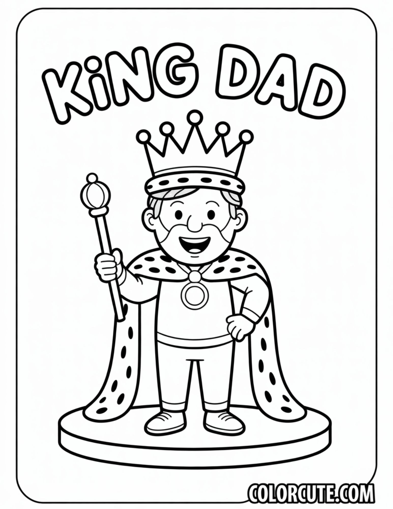 Download our regal Dad King coloring pages to honor your dad like royalty. Keywords: dad king, father’s day, crown theme, coloring page, free printable, royal dad, family craft, celebration art, DIY card, creative fun. This free PDF coloring page is perfect for special cards, fun decorations, or royal-themed crafts. Great for printing at home, school gifts, or arts and crafts time.