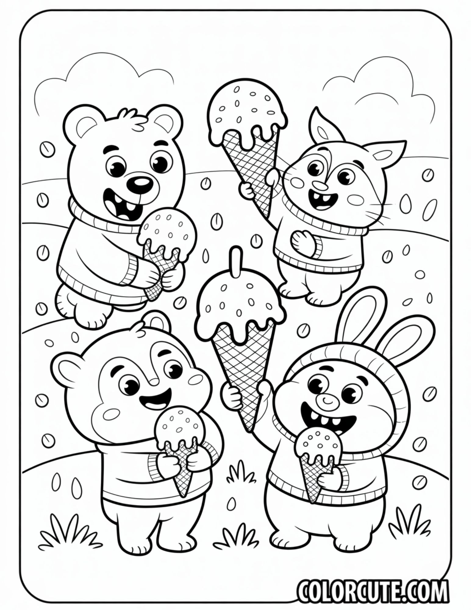 Download our Ice Cream Cozy Friends Coloring Pages and cool off with adorable treats and sweet characters. Keywords: ice cream, cozy friends, summer fun, dessert art, cute coloring, PDF printable, kids activities, fun food, free coloring, cheerful designs. This free PDF coloring page is great for summer parties, dessert-themed crafts, or fun at home. Ready for printing at home, school art, or creative projects.