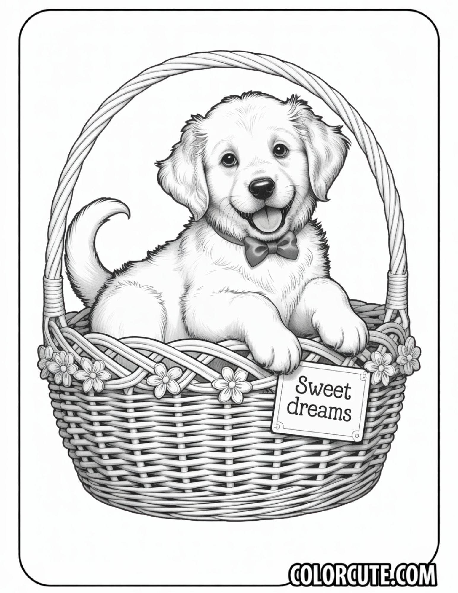 Download our adorable Puppy in a Wicker Basket coloring page, capturing a sleepy pup nestled in a cozy basket. Keywords: puppy in basket, dog nap art, pet printable, wicker coloring, free dog PDF, peaceful pet sheet, nap time craft. File Type: Free PDF coloring page. Perfect For: relaxation sessions, baby shower décor, or pet care units. Compatible With: home printing, classroom use, craft projects.