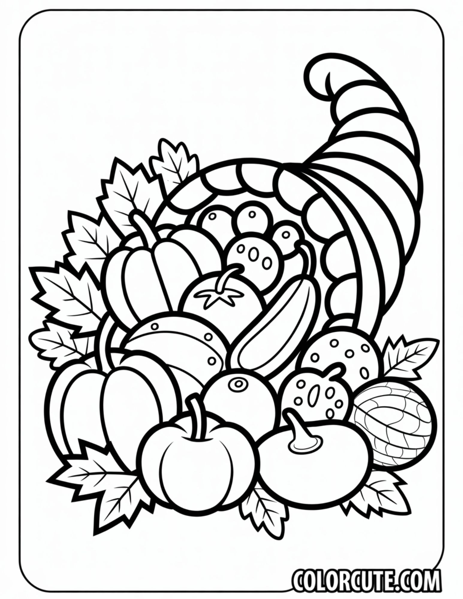 Download our abundant Thanksgiving Cornucopia coloring pages overflowing with fruits, vegetables, and autumn elements. Keywords: cornucopia art, harvest bounty, Thanksgiving feast, seasonal abundance, printable fun, holiday craft, autumn decor, fall harvest, creative coloring. This free PDF coloring page works great for holiday decorations, kids’ art projects, or festive banners. Compatible with home printing, classroom use, and craft projects.
