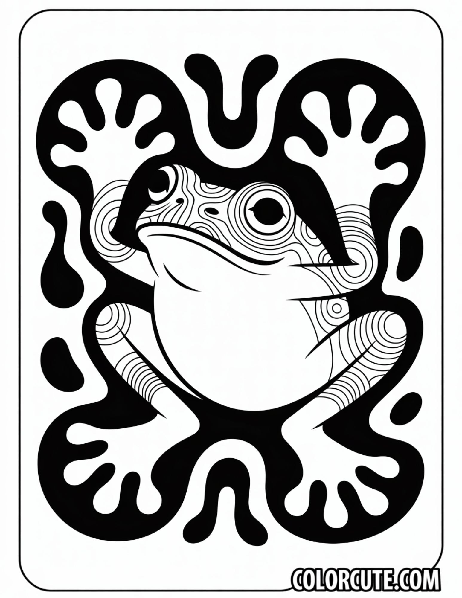 Download our psychedelic Trippy Frog coloring pages filled with surreal designs, swirling backgrounds, and imaginative frog characters. Keywords: trippy frog, psychedelic art, surreal coloring, funky patterns, abstract frog, creative expression, printable PDF, mind-bending, bold lines, adults. This is a free PDF coloring page. Great for older kids, creative art sessions, or stress relief. Print-ready for home use, art classrooms, or unique crafts.