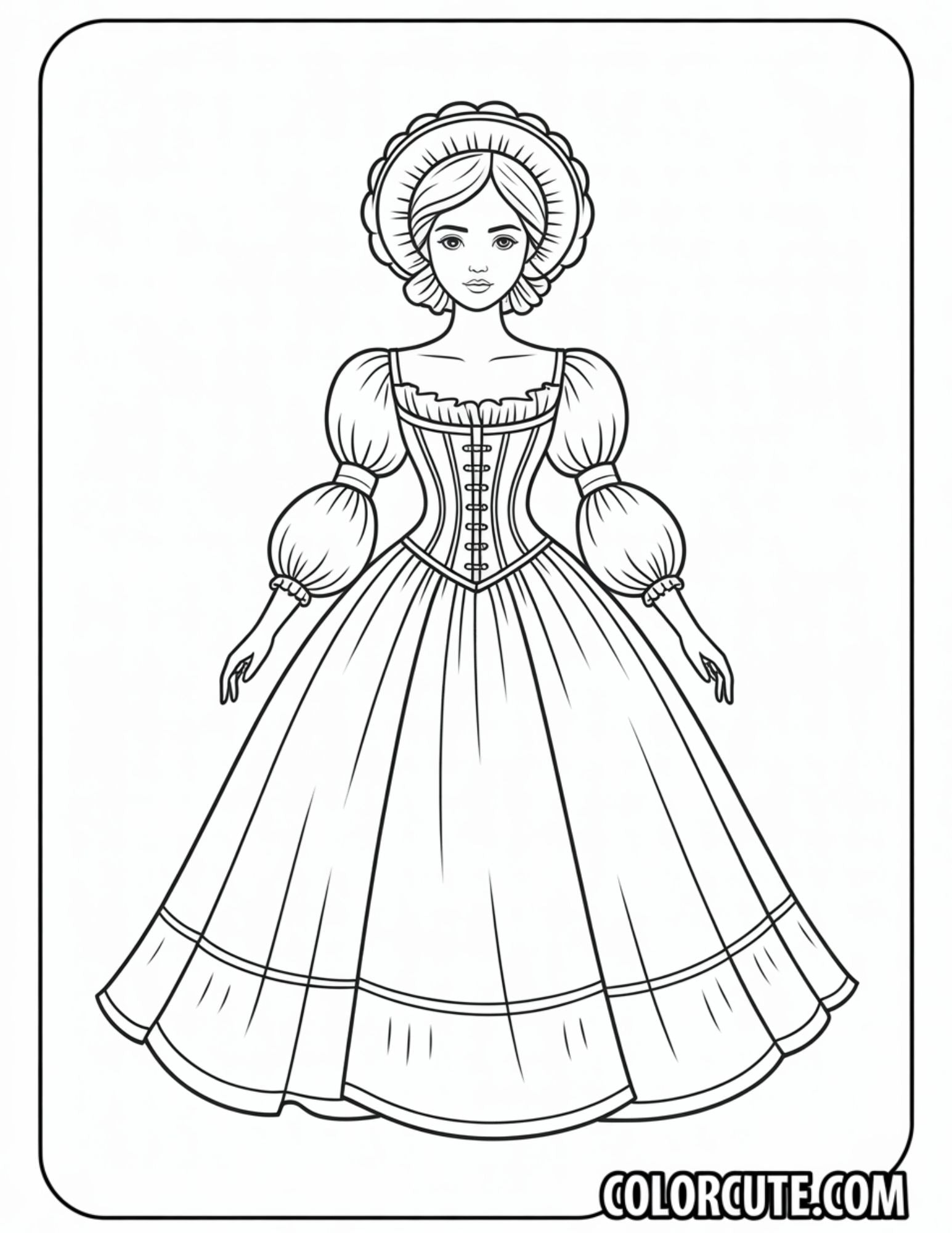 Download our classy Victorian Fashion Girl coloring pages and explore regal fashion from the 1800s. Keywords: victorian dress, vintage fashion, lace detail, historic outfit, elegant lady, PDF coloring, printable design, retro theme, royal look, historical beauty. This free PDF coloring page is great for history buffs, costume studies, or vintage DIY projects. Ideal for printing at home, in classrooms, or historical crafts.